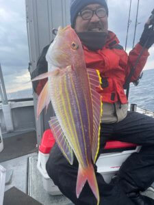 太刀魚、ヒラメ、ネリゴ、甘鯛、真鯛、蓮子鯛、イトヨリ、ホーボー、タカバ、アコウ、ウッカリカサゴ、マグロ、ケンサキイカ、エソ
