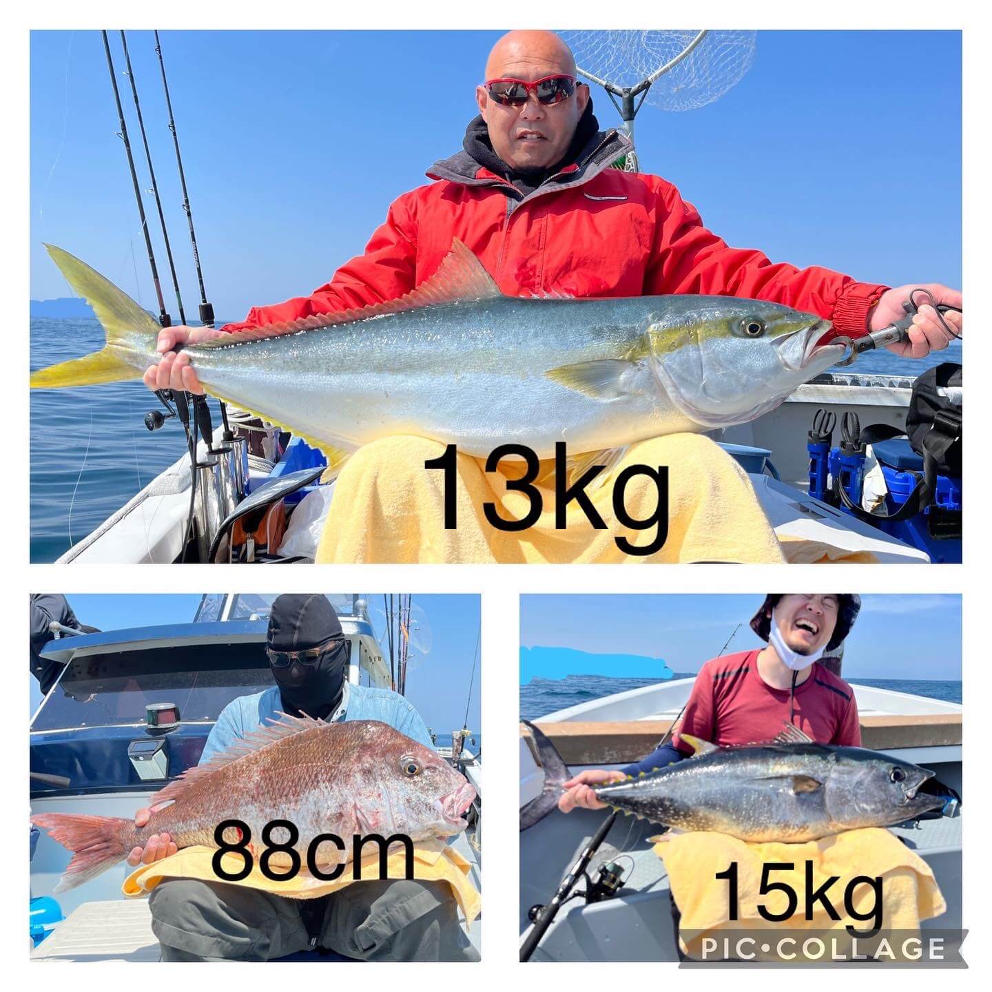 ヒラマサ13kg、真鯛88cm、マグロ15kg(リリース)ヒラゴ2本、ヤズ2本、ヤリイカ少々、根魚いっぱい。色んな魚に出会えました😊