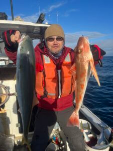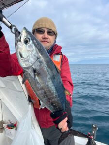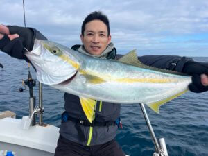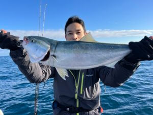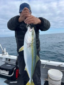 朝一青物狙いのジギング、ヤズ、ヒラゴがボチボチ上がりってます。そこそこ上げたので、沖の五目ポイントを流すけどイマイチ…。