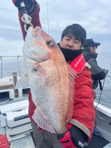 今日はタイラバもしっかりとやりたいとの事で、朝3時間ジギング。近場でボチボチ釣れてくれて、根魚ポイントに移動。潮止まりの時間帯とかぶり渋い…💦潮も動かず0ノット…。こんな日はこっちから仕掛ける!移動、移動でポイント叩きながら、なんとかいいサイズの真鯛GET