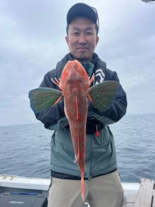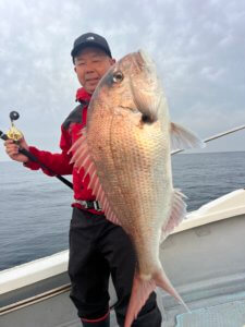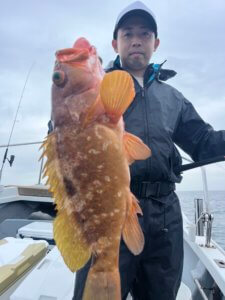 真鯛70㎝オーバー、根魚50㎝オーバーどれも型揃いで良かったです。雨の為、午前便に変更しまひたが、朝1投目から短時間でボチボチ釣れてくれてよかったです。
