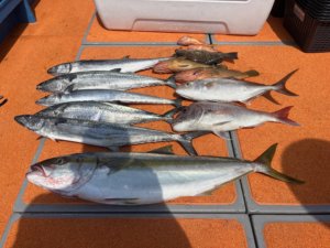 カツオ、カンパチ、黒マグロ(リリース)、アコウ、アラカブ、アオナ、オニカサゴなど多彩な魚種がヒット。