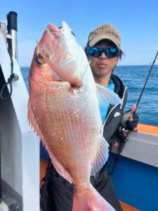 朝はうねりが強く、まずは近場エリアからスタート。ネリゴや真鯛をポツポツ拾えましたが、サイズはやや控えめ…。