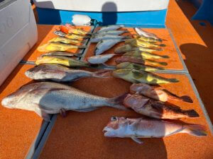 釣った魚でそのまま宴会を開催されるお客様ということで、「豪華な夕食用の魚を確保」をテーマに多魚種狙いの釣行となりました。
