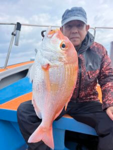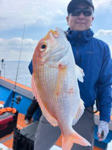大鯛は出ませんでしたが、真鯛は65cmを頭に47〜50cmの良型が揃いました。