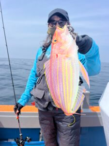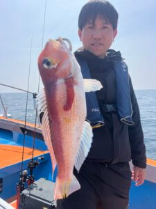 後半はタイラバに切り替え、真鯛74cmの良型を筆頭に甘鯛もヒット!1日を通して魚種も豊富で、非常に内容の濃い釣果となりました。