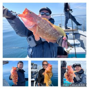 イサキ、ヤリイカ、ケンサキイカ、コウイカ、真鯛、キジハタ、アオナ、カサゴ、アヤメカサゴ、ホーボーでした。