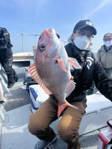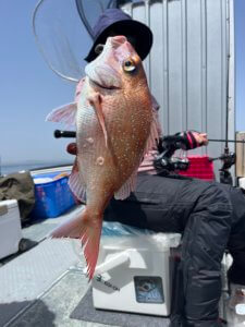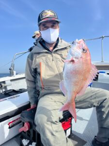 入学祝いがあり、どうしても鯛が釣りたいと、常連のTさん。お孫さん長女と次女2人分しっかり確保できてよかったです😊