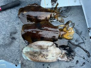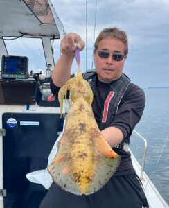 こちらは短時間だったけど、アオリイカ1.6キロ、1.2キロ、コウイカ1.4キロまずまずの釣果で終了。