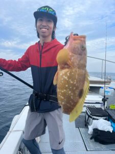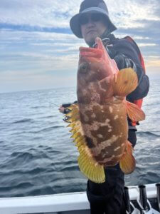 朝一イサキ狙い。根魚もポツポツでしたが、サイズ◎
