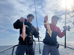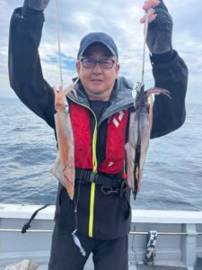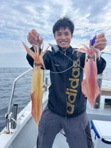 2時間だけイカメタル。ダブルヒット❗️トリプルヒット❗️竿頭15杯こちらもサイズいい感じ。